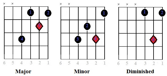 We would be showing you the major, minor and diminished chord shapes straight up.