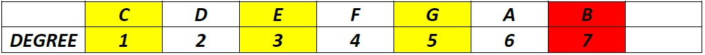 SO HAVING GOTTEN THE FORMULA OF A SEVENTH CHORD LETS CONVERT OUR BASIC PRIMARY CHORDS INTO THERE MAJOR SEVENTH FORM
